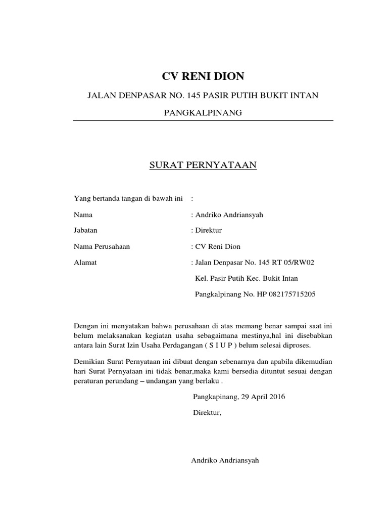 Surat keterangan usaha ini biasanya diperlukan ketika seorang pelaku usaha ingin mengajukan pinjaman atau kredit ke bank. Berikut kumpulan contoh surat keterangan +file doc yang dapat kamu temukan seperti contoh surat keterangan kerja, penghasilan, domisili usaha dll. Contoh surat pernyataan ahli waris berikut ini anda bisa lansung copypaste contoh surat keterangan / pernyataan ahliwaris untuk penutupan rekening bank. Setelah mendapatkan surat keterangan dari rt dan rw setempat, bawalah surat tersebut dengan seluruh dokumen persyaratan ke kantor kelurahan. Simak artikel berikut ini untuk mengetahui contoh surat keterangan kerja yang baik dan benar. Pengertian surat pernyataan hutang piutang. Contohnya seperti beberapa contoh surat keterangan domisili, surat keterangan sakit, ataupun surat. Memang surat keterangan aktif kuliah ini sering menjadi prasyarat untuk semacam lomba, mengajukan beasiswa, baik beasiswa ke luar negeri maupun di dalam negeri. Surat keterangan usaha adalah dokumen penting yang harus dimiliki oleh pemilik usaha. Penutupan cv di jamin mudah dan terpercaya. Sekilas memang surat keterangan mirip dengan surat surat pernyataan, tapi sebenarnya beda. Cv curriculum vitae atau dalam bahasa indonesia yang berarti daftar riwayat hidup/biodata. Surat keterangan kerja lebih mengacu pada informasi bahwa yang bersangkutan sedang bekerja di sementara itu, surat keterangan pernah bekerja sering disebut dengan surat pengalaman kerja setelah penutupan, di bagian bawah akan dicantumkan tanggal pembuatan surat yang diakhiri.